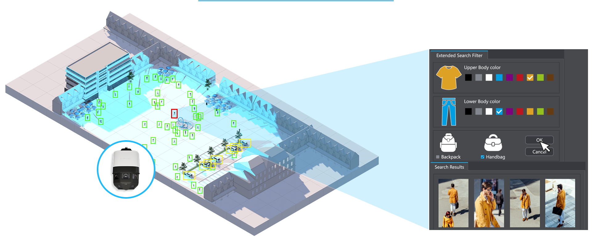 A unique feature of Panomera® V8 is its seamless 180° field of view combined with its ability to logically link the neural networks of the eight integrated AI chips. This enables the camera to accurately analyze even large, contiguous scenes and eliminates the biggest weakness of many video analysis systems: incomplete, patchy, or duplicate data. This makes the Panomera® V8 the perfect choice for a wide range of AI solutions—whether directly with on-board applications or in combination with partner analysis technologies.