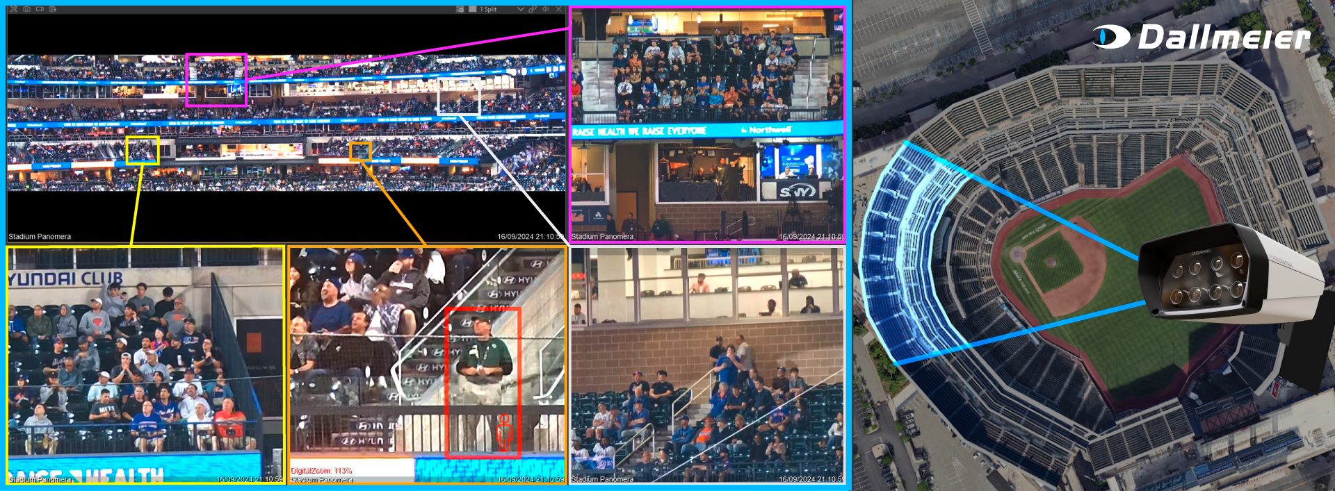 The decisive advantage lies in our patented Panomera® technology. Unlike conventional cameras, the Panomera® system combines several sensors with different focal lengths. This means that even large areas, such as grandstands, spectator areas and outdoor facilities, can be monitored in high resolution with just a few systems. Every area can be viewed in detail at all times, with consistent image quality across the entire scene, both live and in recordings. This enables subsequent forensic analysis to identify offenders and help the club avoid penalties, for example if pyrotechnics have been set off.