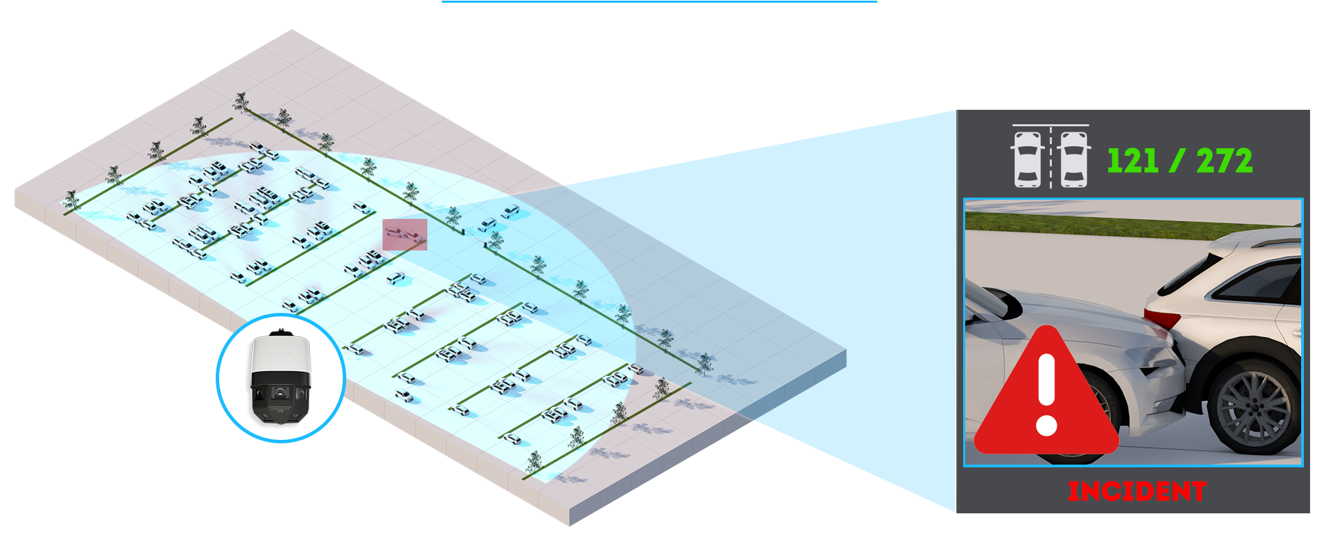 A unique feature of Panomera® V8 is its seamless 180° field of view combined with its ability to logically link the neural networks of the eight integrated AI chips. This enables the camera to accurately analyze even large, contiguous scenes and eliminates the biggest weakness of many video analysis systems: incomplete, patchy, or duplicate data. This makes the Panomera® V8 the perfect choice for a wide range of AI solutions—whether directly with on-board applications or in combination with partner analysis technologies.