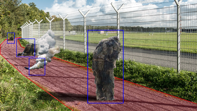 AI Perimeter sinir ağı, iyi hazırlanmış fail grupları tarafından yapılan saldırıları tespit etmek için özel olarak tasarlanmıştır. Olağandışı vücut duruşları (eğilmiş, çömelmiş, uzanmış) ve hareket kalıpları (çok yavaş, çok hızlı, sürünen, sürünen, yuvarlanan) olan kişileri güvenilir bir şekilde tespit eder. Kıyafet türü (açık, koyu) önemsizdir ve ağ, kamuflaj kıyafetleri (İngiliz Smock, Kamuflaj Orta Avrupa, Ghillie vb.) giyen kişileri tespit etmek için yoğun bir şekilde eğitilmiştir.